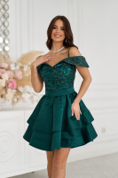 Коктейльна Сукня Атлас Паєтка Відкриті Плечі 25023 Зелена