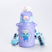 Термос поїльник з трубочкою з ремінцем та силіконовим чохлом дитячий 450 (мл) Фіолетовий