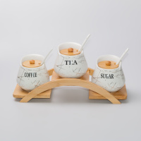 Набір банок для сипучих продуктів 3 штуки по 500 мл на бамбуковій підставці, білий