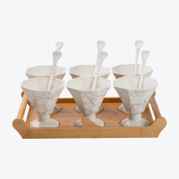 Набір креманок керамічних з ложками на бамбуковій підставці